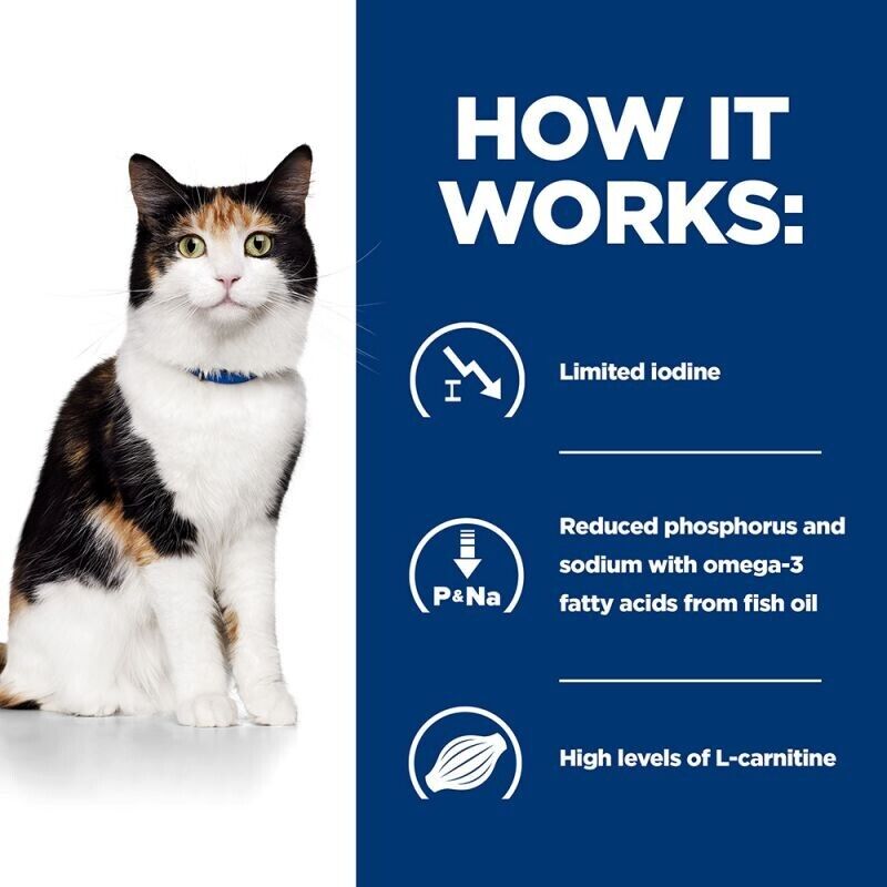 Hill's Prescription Diet Feline y/d Thyroid Care is a complete dry food for adult cats. Supplements other than Hill's Prescription Diet Feline y/d Thyroid Care are not necessary and can reduce the effectiveness of the food.