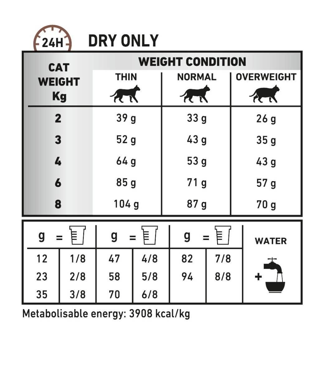 Royal Canin Veterinary Cat – Gastrointestinal Fibre Response contains wheat gluten, which is a particularly easy to digest protein that reduces the intestinal fermentation process. Fermentable fibres (FOS) can help to regulate the gut flora, whilst soluble fibres allow all ingredients to pass easily through the digestive system. Thanks to EPA and DHA, two long-chain omega-3 fatty acids, there is additional support for intestinal health. The patented antioxidant complex helps to protect bodily cells and strengthen immunity.